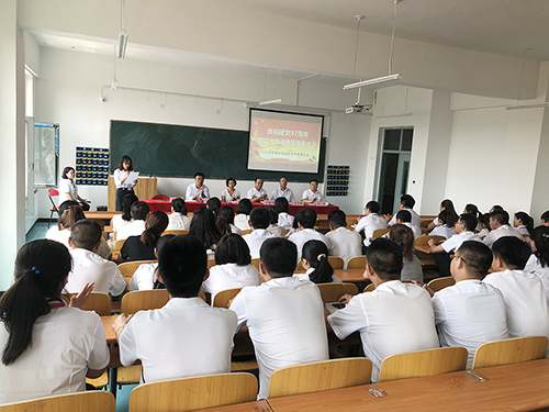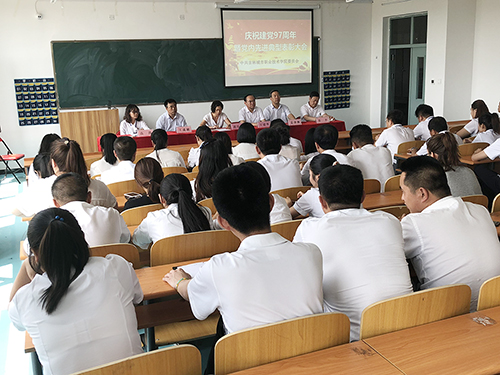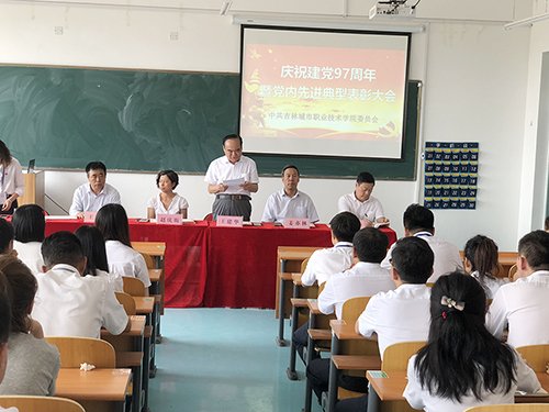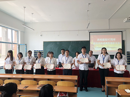为纪念中国共产党建党97周年,推进“两学一做”教育常态化、制度化,进一步激励全校党员和教职工坚定党的信念,牢记党的宗旨,更好地发挥党委核心作用、党支部战斗堡垒作用和党员先锋模范作用,2018年6月26日,我校隆重召开庆祝建党97周年暨2017-2018年度党内先进典型表彰大会,对先进党支部、优秀党务工作者和优秀共产党员了进行表彰。学校党委书记赵庆昕出席会议并讲话,全体党员参会。会议由机关第一党支部书记高波主持。