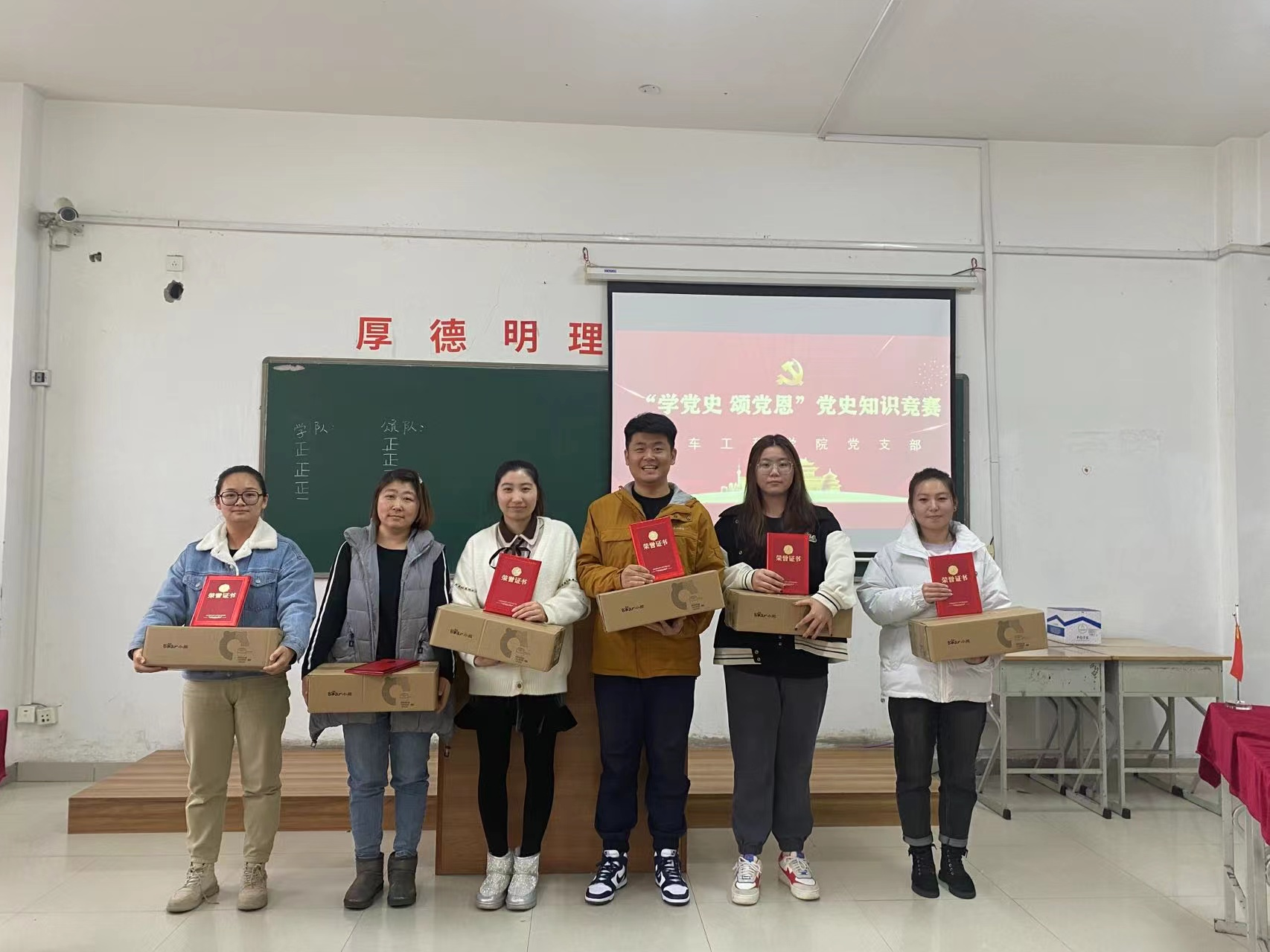 按照我校党史学习教育工作安排,11月17日,我院党支部在2号楼401教室举办了“学党史 颂党恩”党史知识竞赛活动。由在校教师党员及预备党员组成两支队伍参赛。