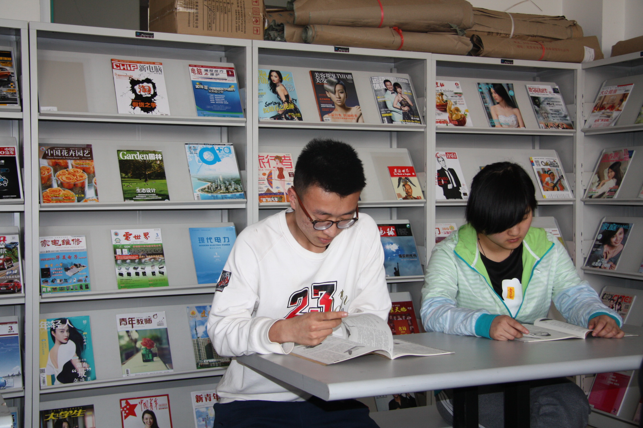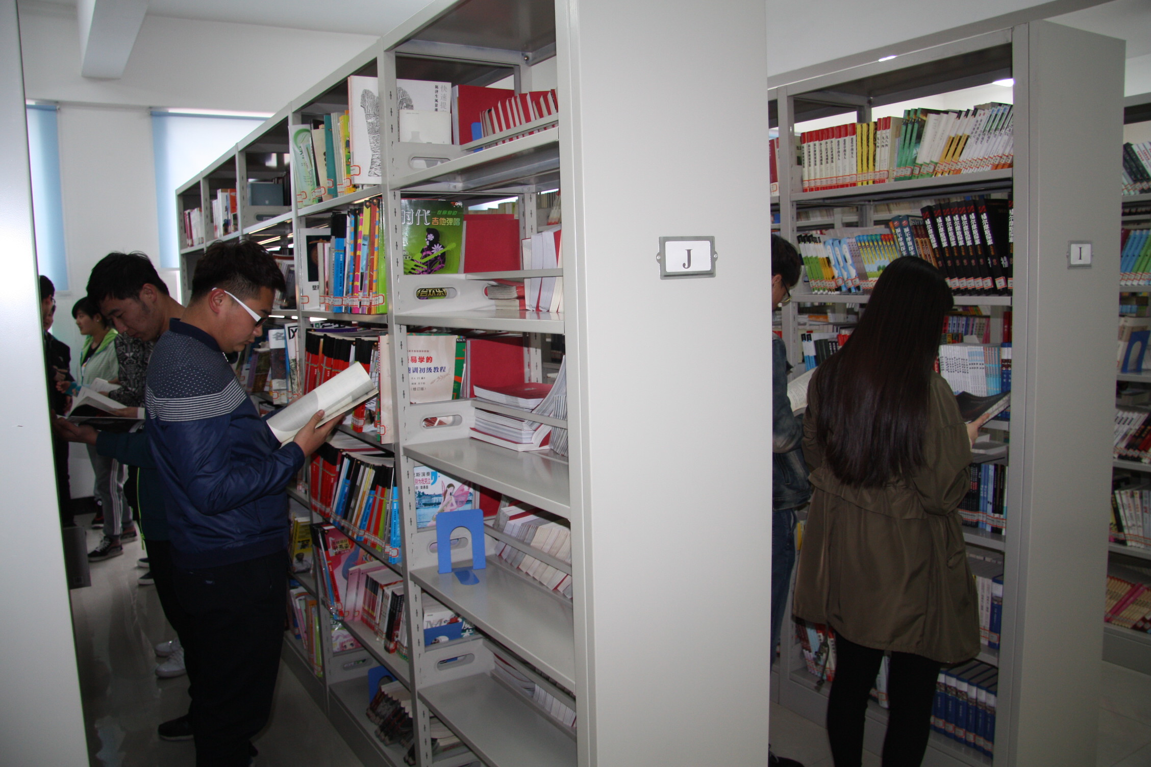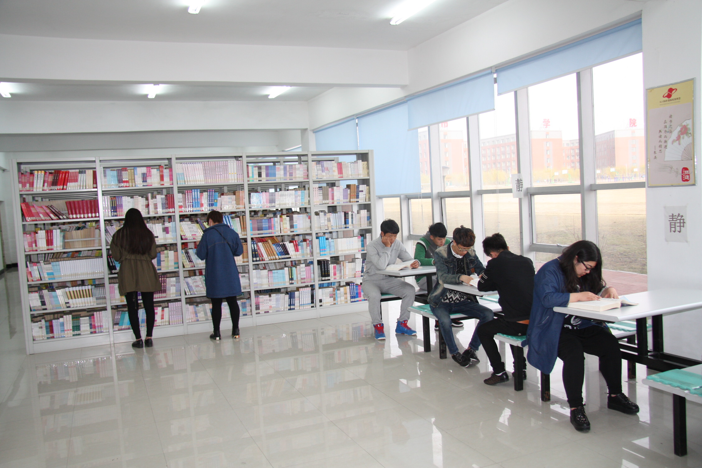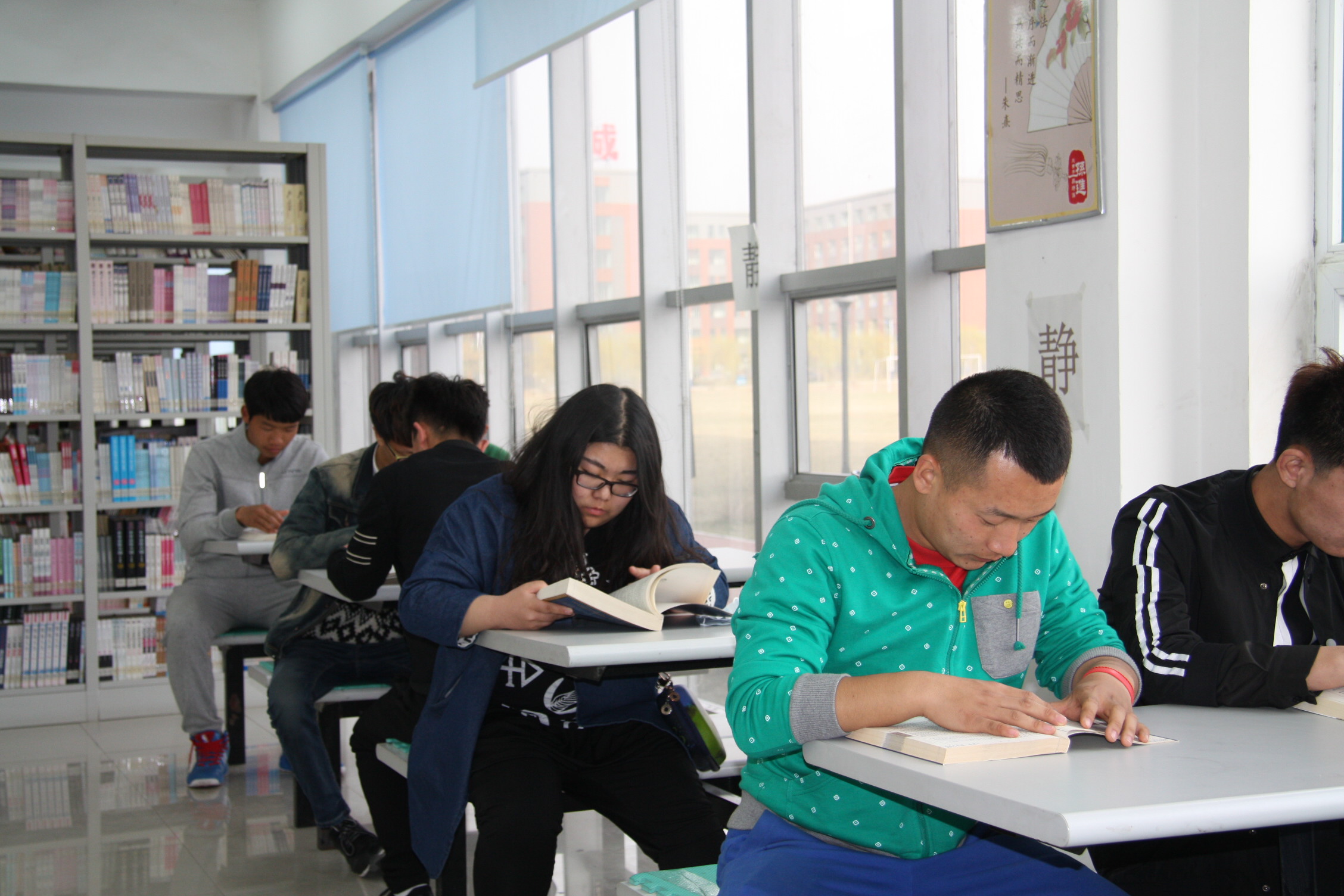 图为我校学生在图书馆看书