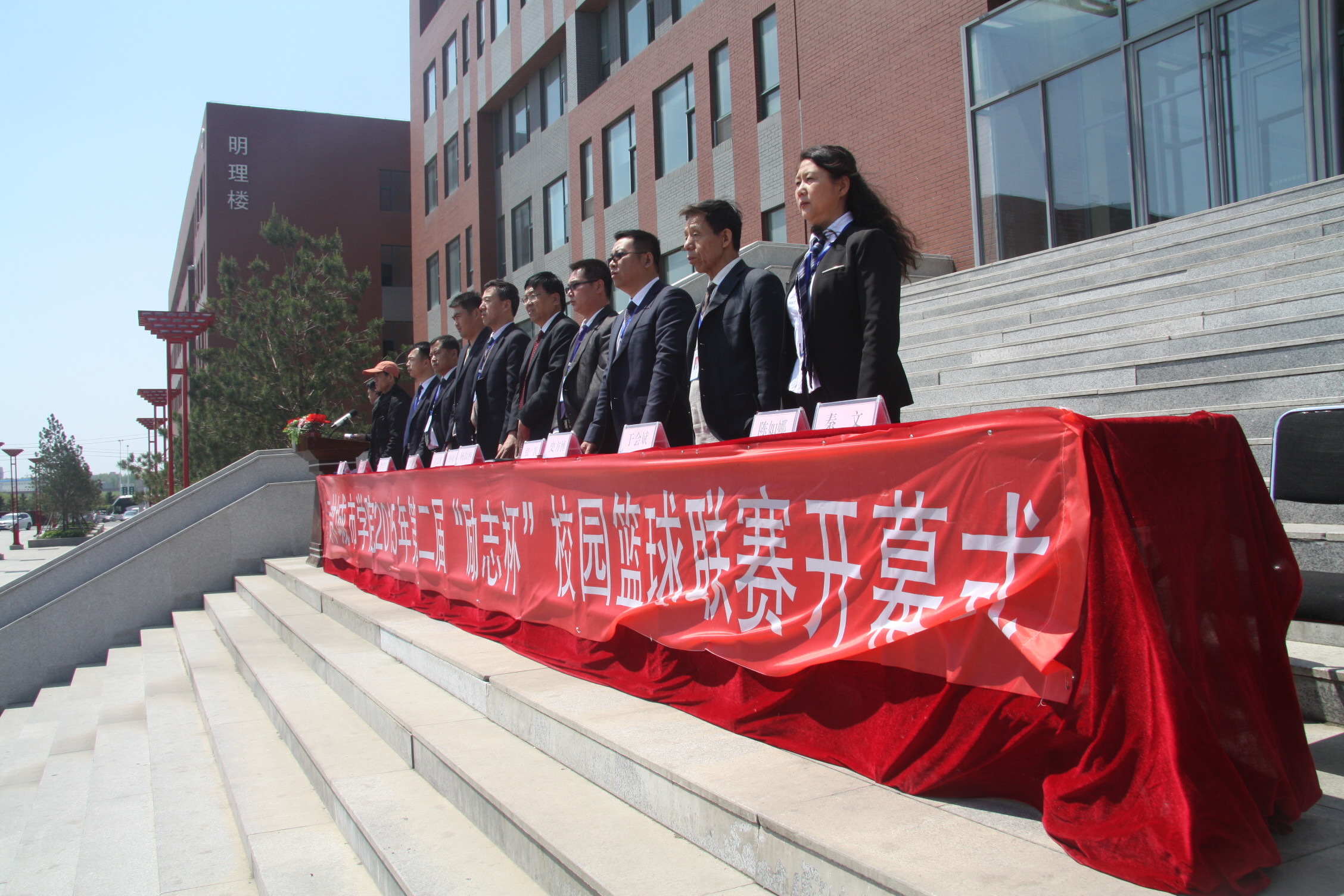 图为我院校领导参加第二届“励志杯”篮球赛开幕式