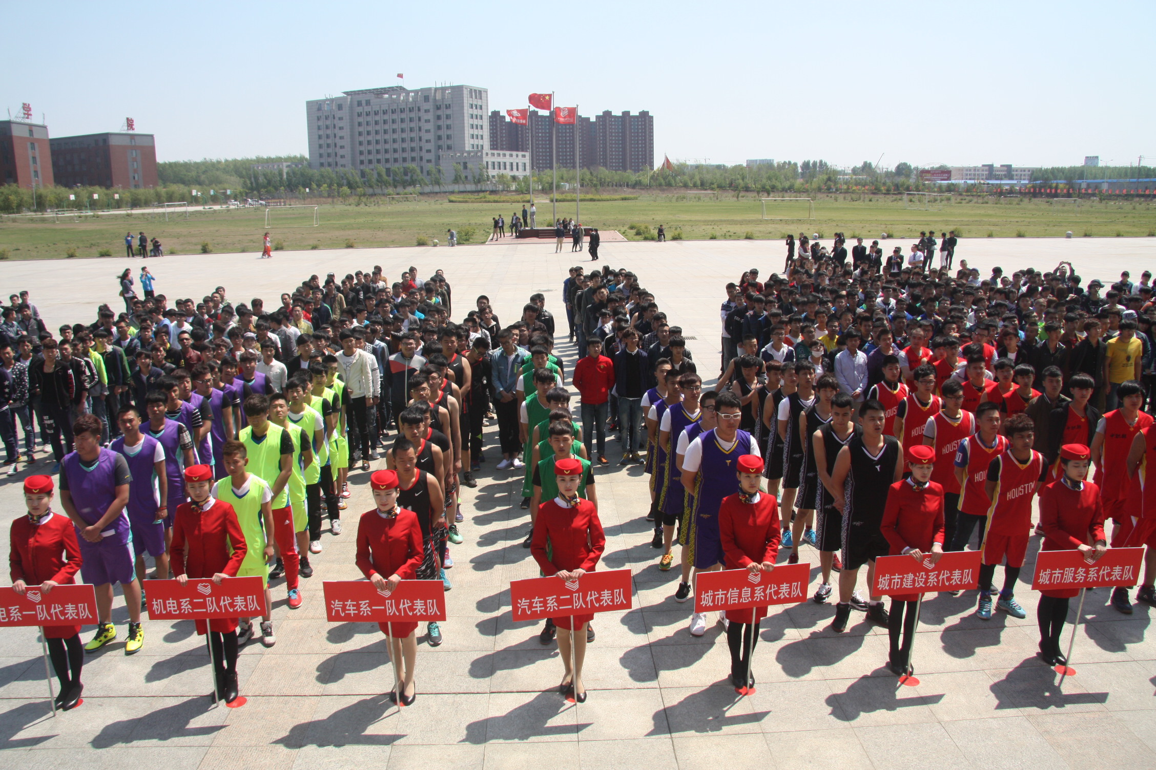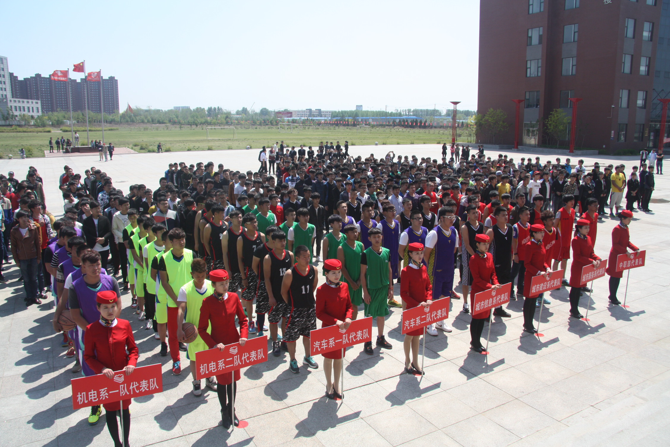 图为各系(部)代表队参加第二届“励志杯” 篮球赛开幕式