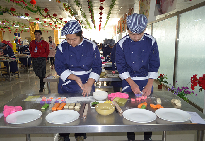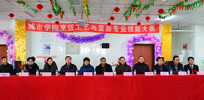 出席本次活动的学院领导有SJ国际教育集团董事长助理治晓峰、副院长孙松林、副院长刘爱光、副院长姜亦林、 党委副书记宋继红、教务处处长史方博、总务处处长陈登峰、学生处处长张志勇、人资处处长郭庆慧、教学督导李忠军、城市服务系主任秦文。比赛开始前,由城市服务系秦文主任致辞并宣布比赛开始。比赛共设立刀工组和面点组两个比赛项目,要求参赛学生在规定时间内完成规定比赛项目,由专业所有教师组成的评审团队按选手的作品质量进行现场打分。