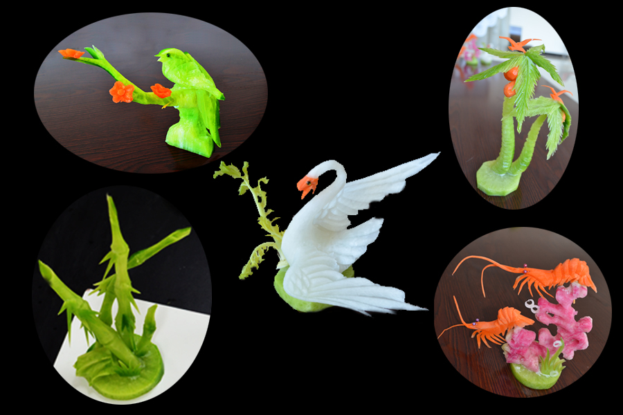 在比赛过程中,所有选手着装整齐、精神饱满、专注认真,充分的发挥了自己的实力和水平。学院领导们观看了比赛的全过程,对学生们展示出的实践能力给予高度的评价和充分的肯定。经过40分钟紧张激烈的比赛,所有选手都顺利完成了比赛,评审团当场打分。最终,冯秋源、闫乐、徐佳旺、刘义新、孙迪、黄腾达六位同学分别获得了刀工组和面点组的三等奖;王妍、靳江月、付杰、黄山分别获得了刀工和面点组的二等奖;刘鑫垚、丁丹两位同学最终拿到了刀工组和面点组的第一名!由学院领导向获奖选手颁发了奖品和荣誉证书。