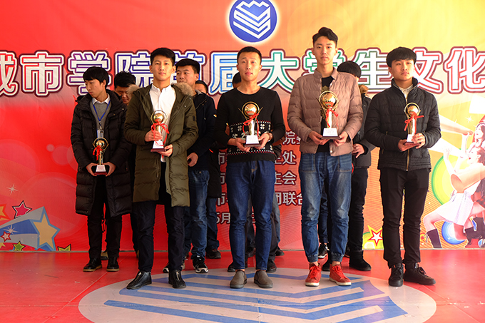 在颁奖仪式中,吉林城市职业技术学院2015年金秋校园文化技能艺术节教工组篮球友谊赛中获得第