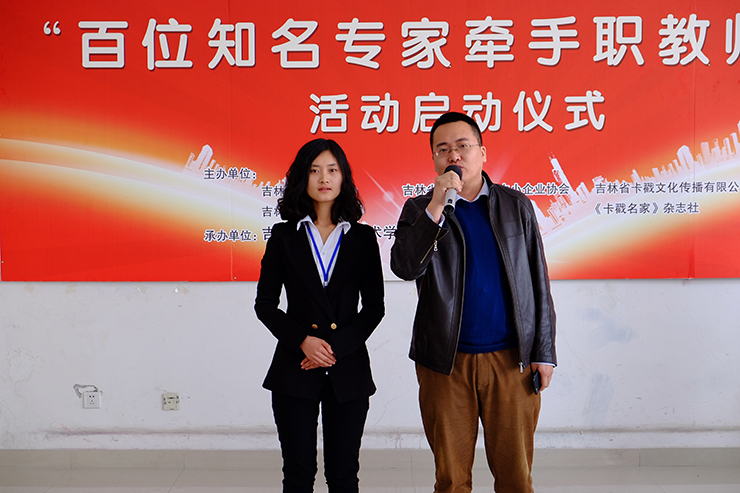 初春暖阳洒满了吉林城市职业技术学院的每一寸土地,2016年3月26日上午10点,卡戳网携手吉林省名人研究会、吉林省民营企业和中小企业协会、吉林省长吉图商会、《卡戳名家》杂志社、海峡两岸青年创业园共同主办,吉林省城市技术学院承办的“百名知名专家牵手职教师生”活动仪式隆重启动。