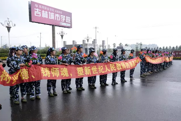今日一早,我院大一新生数千人齐聚校门口,在微微的细雨中欢迎我院教师的 到来。当第一辆班车到达我校时,数千名新生齐声欢迎:“祝老师节日快乐,老师您辛苦了......."一声又一声嘹 亮的呐喊声响彻整个校园。让感恩成为教师节最永久浓情的表达。