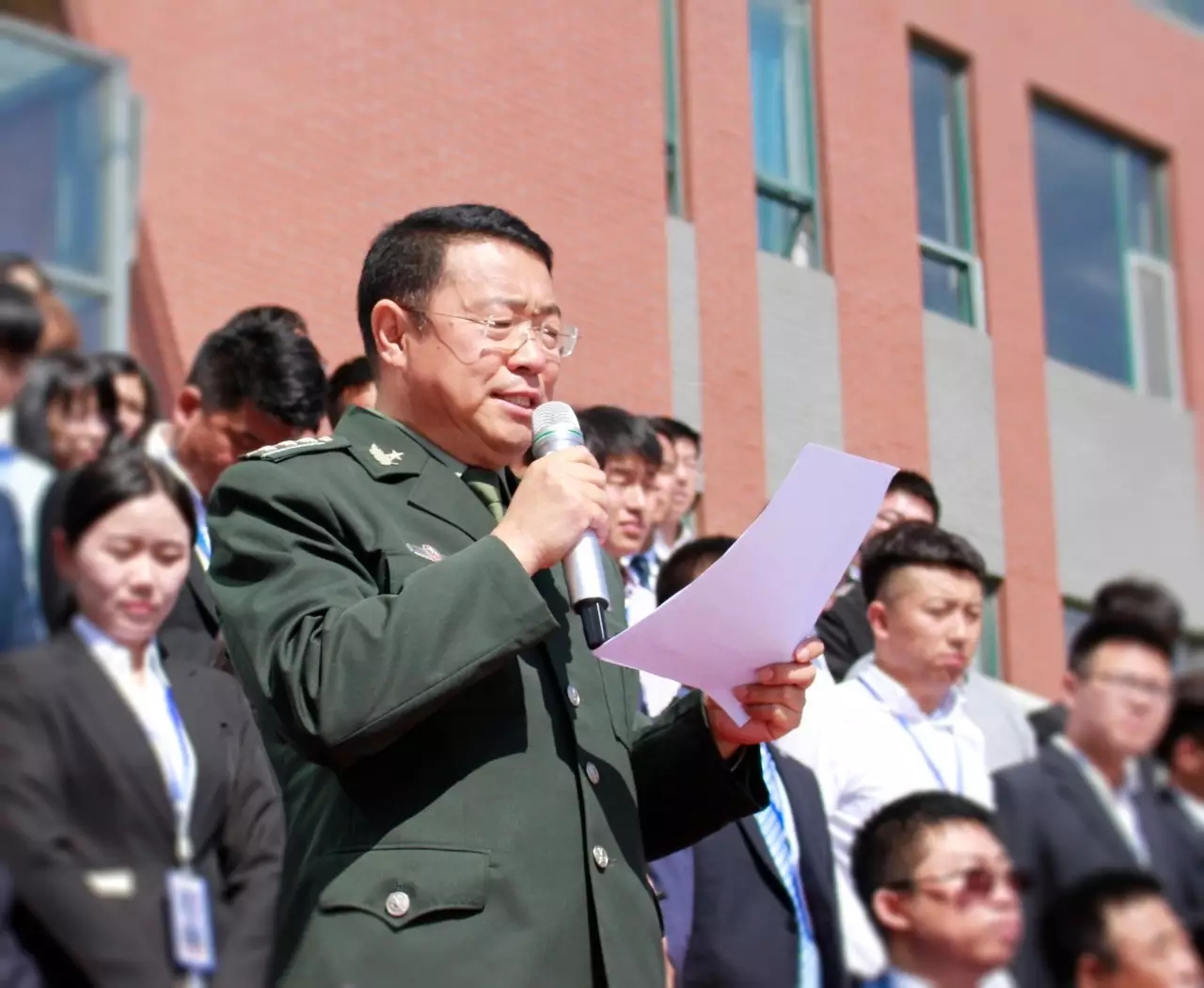汇报表演之后,孙进董事长发表了重要讲话,代表学校,向承担本次军训任务的全体教官表示崇高的敬意和衷心的感谢!向参加军训的全体同学致以亲切的问候!