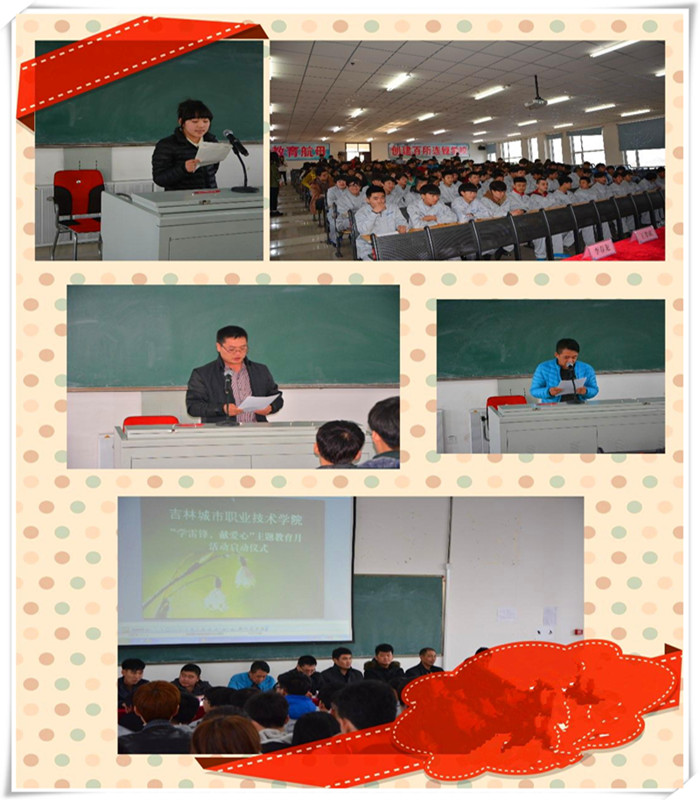 2014年3月5日下午我院学生处、团委、学生会、社团联合会在学院综合楼608阶梯教室举行以“学雷锋,献爱心”主题教育月活动启动仪式,全院各系、各专业师生代表1000余人参加了仪式,启动仪式由学生处学生管理办张科研副主任主持 。
